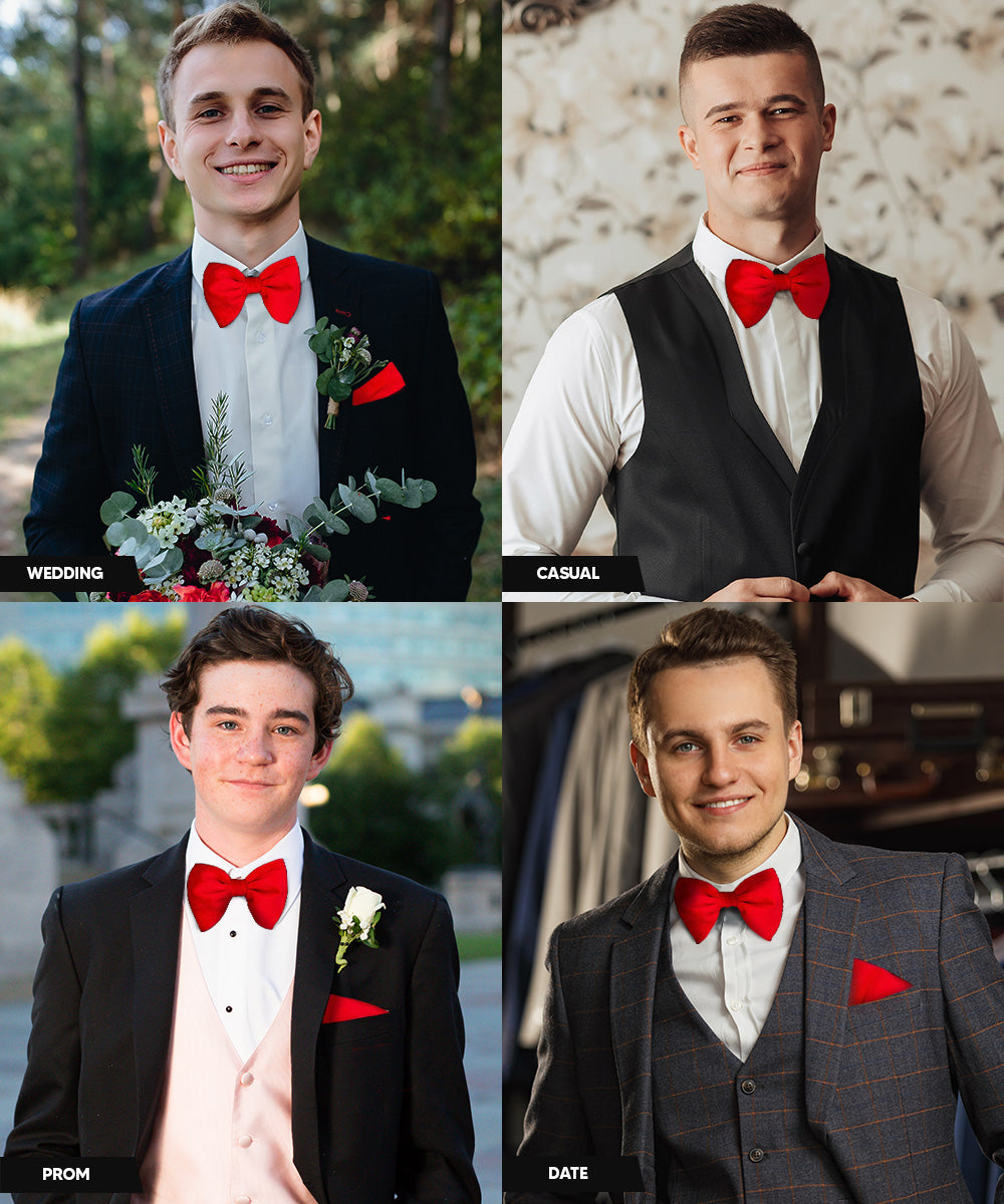 - STYLISH: Sometimes the smallest details can make the biggest difference. Men’s Vibrant Colorful Velvet Edwardian Bow Tie & Pocket Square is the perfect accessory for your shirt, blazer, suit or tuxedo. The stylish Pocket Squares for men add a stylish touch.