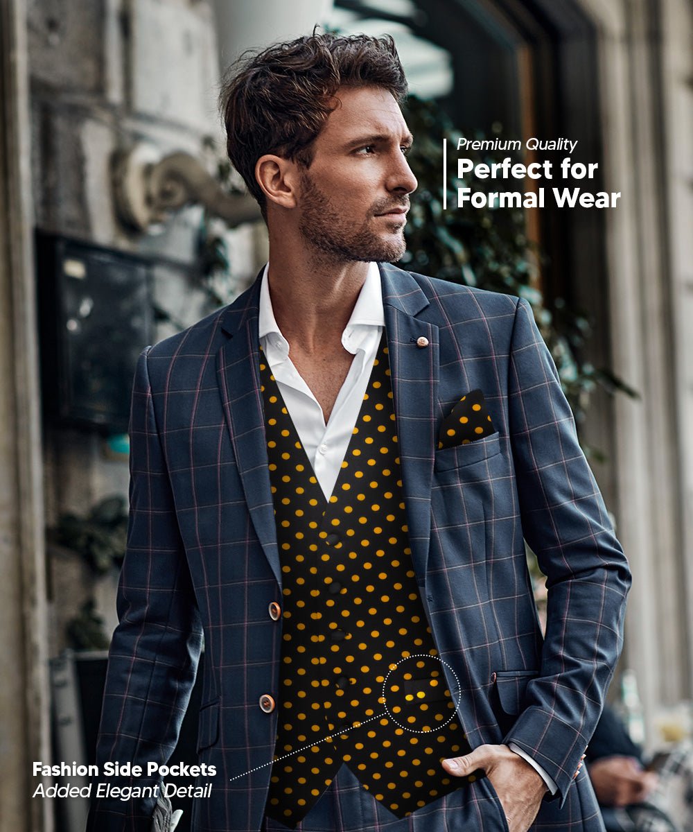 Vittorio Farina Men's White and Black Dot Polka Dot Vest, Necktie, Bow Tie and Pocket Square Set