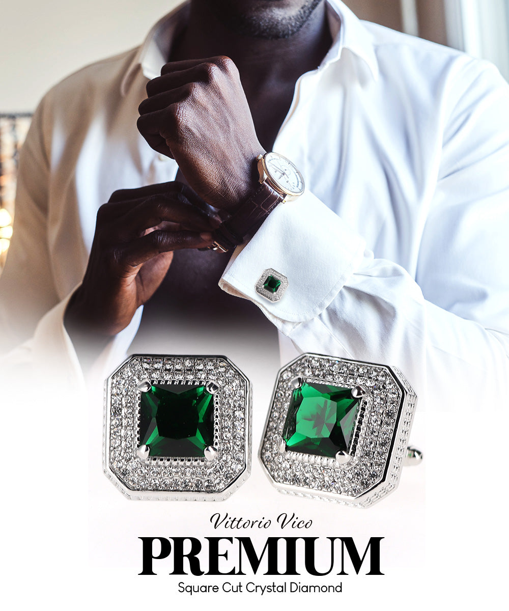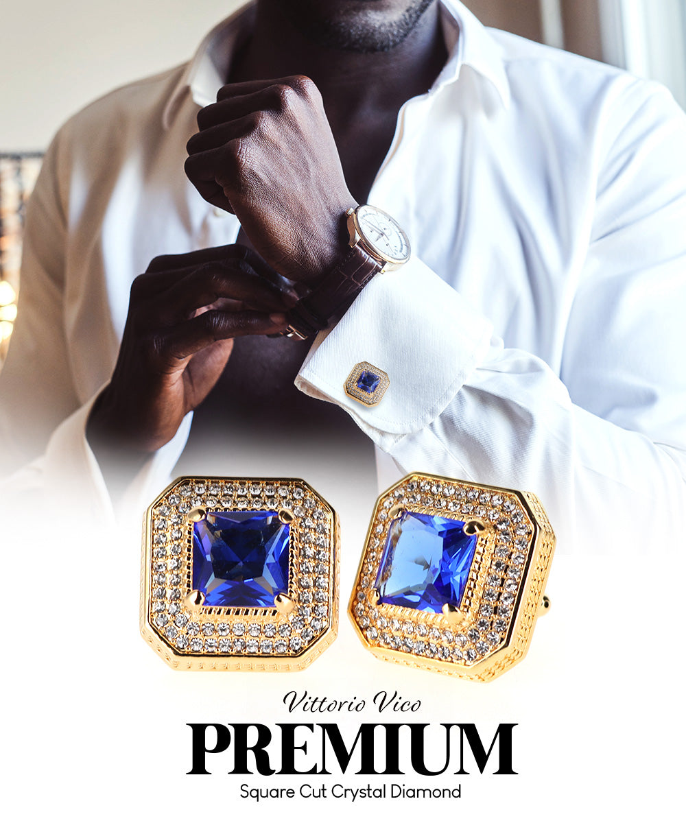 Vittorio Vico Square Colored Crystal Diamond Cufflinks (CL 71XX): Accessories for Shirt, Blazer, Suit or Tuxedo