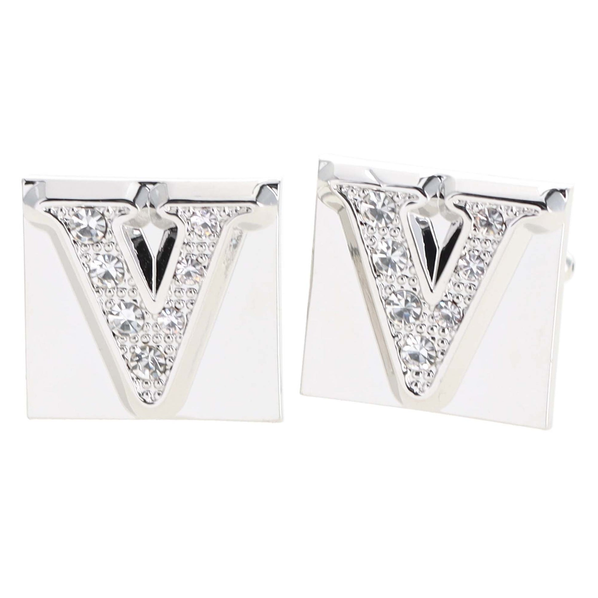 Vittorio Vico Rhinestone Initial Cufflinks Set: Accessories for Shirt, Blazer, Suit or Tuxedo