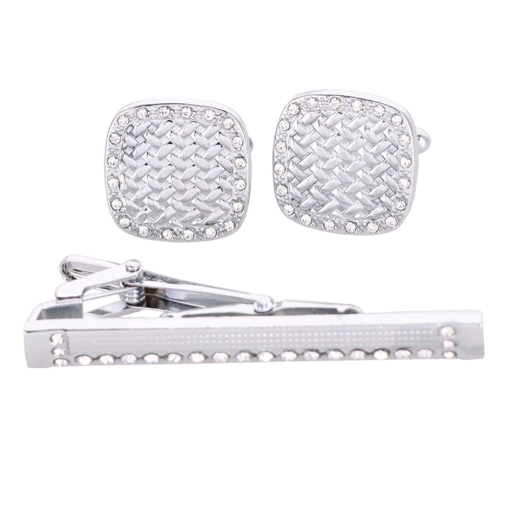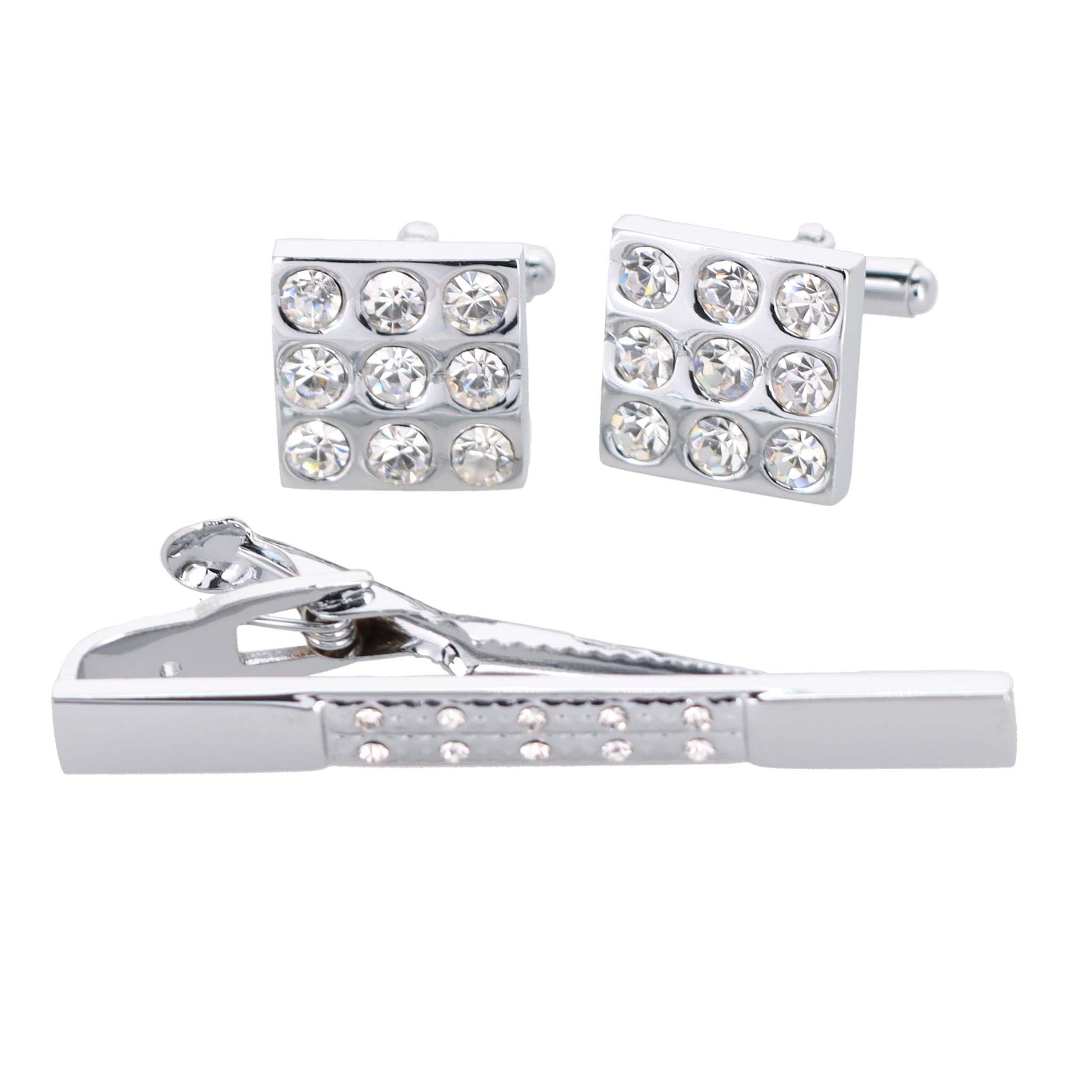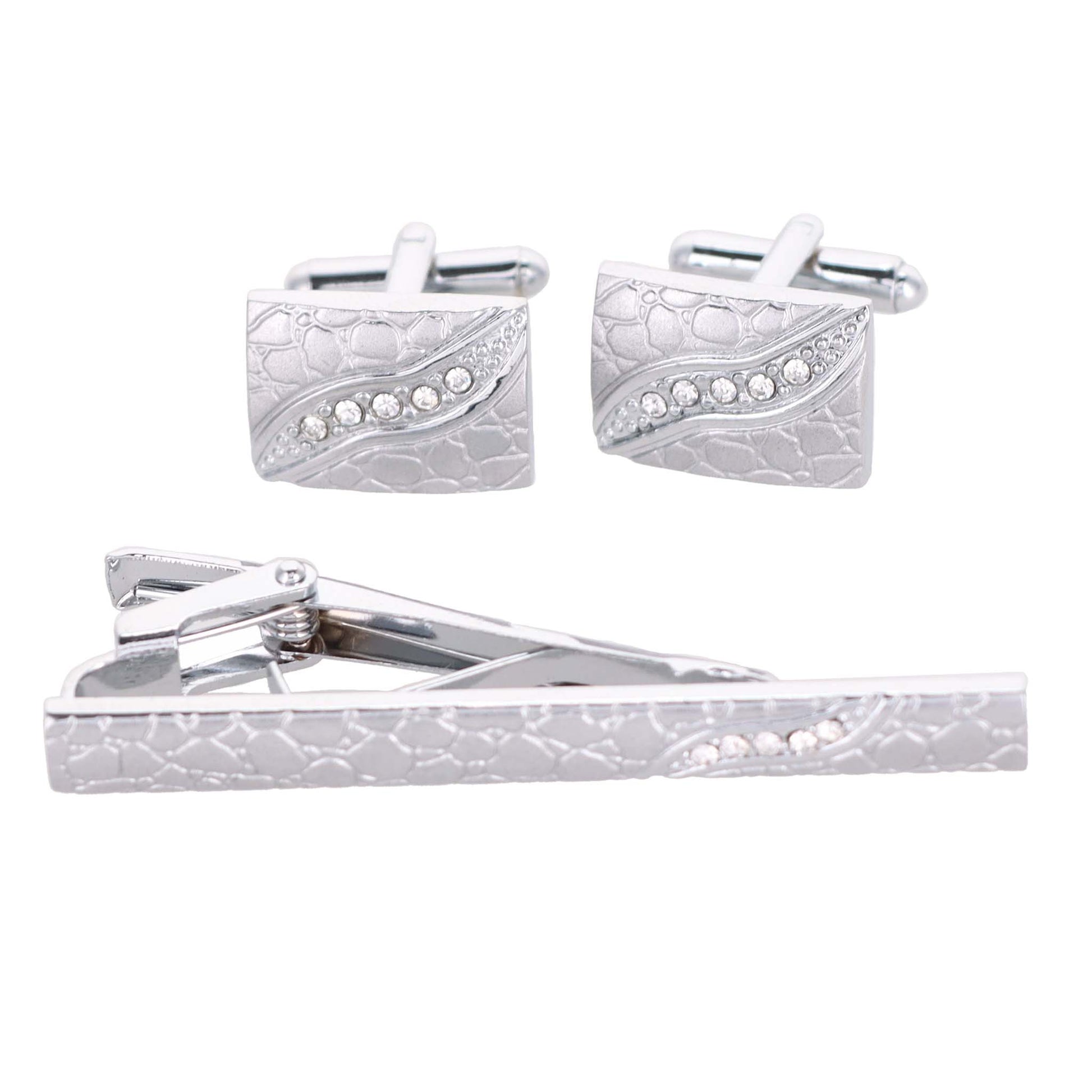 - STYLISH: Sometimes the smallest details can make the biggest difference. Men’s Silver Rhinestone Cufflinks & Tie Bar Set is the perfect accessory for your shirt, blazer, suit or tuxedo. The stylish cufflinks and Tie Bar for men add a stylish touch packaged in a gift box for that special person in your life.