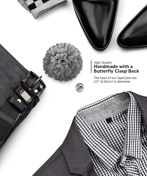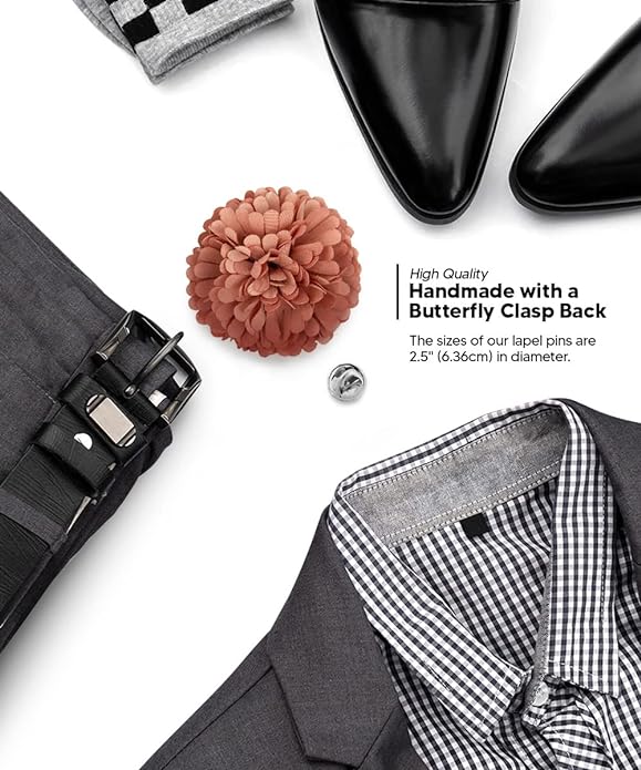 - STYLISH: Sometimes the smallest details can make the biggest difference. Men's Formal Carnation flower lapel pin for suits is the perfect suit accessory for your blazer. The stylish pins for men add a stylish touch to your formal wear. You can even add this to your tie as a tie pin!
