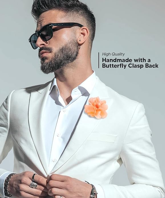 - STYLISH: Sometimes the smallest details can make the biggest difference. Men's Solid flower lapel pin for suits is the perfect suit accessory for your blazer. The stylish pins for men add a stylish touch to your formal wear. You can even add this to your tie as a tie pin!