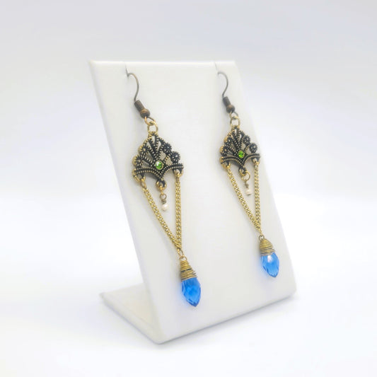 Antiqued Brass / Bronze Intricate Filigree Chandelier Dangle Earrings