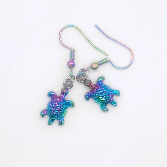 Rainbow Tiny Sea Turtle Dangle Earrings