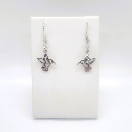 Tiny Silver Hummingbird Dangle Earrings