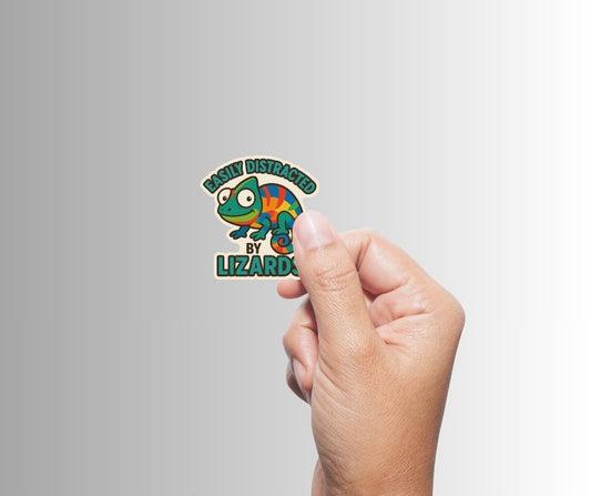 "EASILY DISTRACTED BY LIZARDS" Colorful Funny Sticker