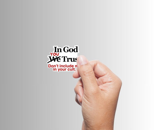"In God You Trust. Don't Include Me In Your Cult." Sarcastic Sticker