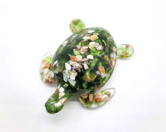 Resin Sea Turtle Figurine - Made w/ Blue Seaglass/Seashells