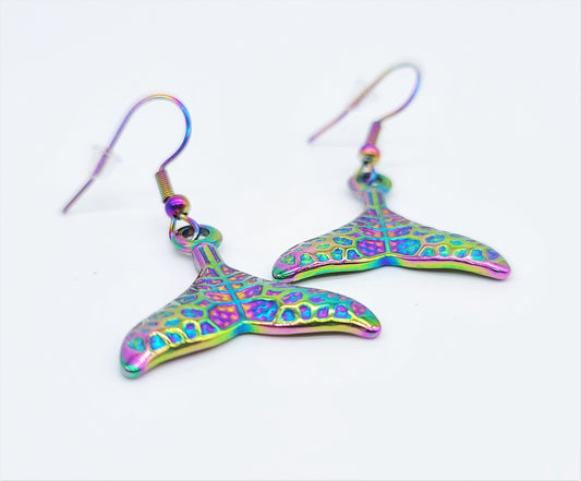 Rainbow Chromium Mermaid Tail Earrings