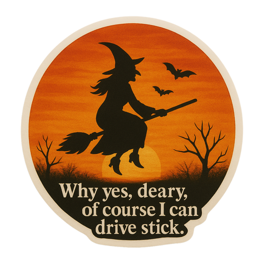 Funny Spooky Witch Halloween Sticker "Witch Driving Stick"