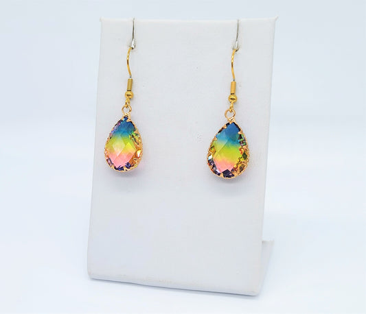 Iridescent Red / Yellow Rhinestone Finger Cuff Ring, Size 7