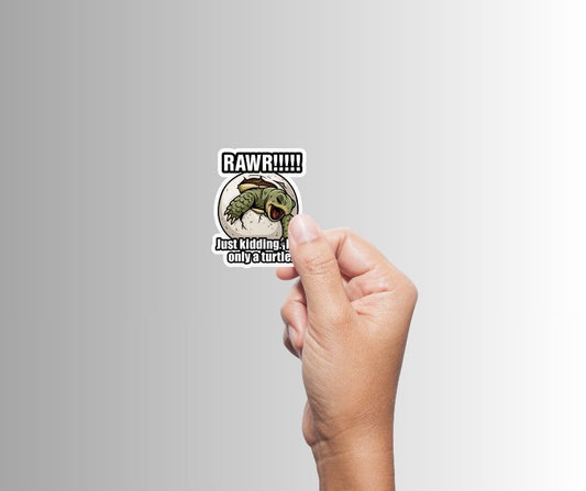 "RAWR!!!! Just kidding. I'm only a turtle." Funny Sticker