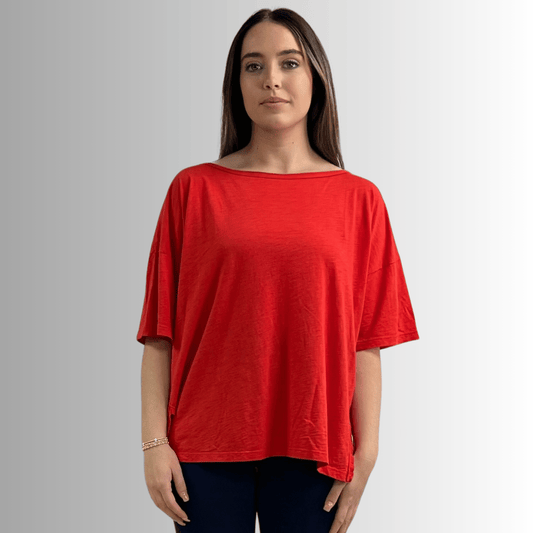 Aubree Cotton Garment Dyed Slub Top in Crimson Red