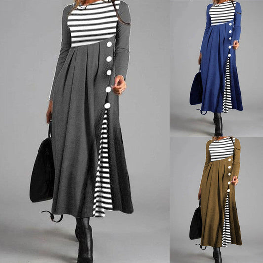 Striped Color Block Dress - Relaxed Fit Silhouette In Polyester Blend For Everyday Elegance