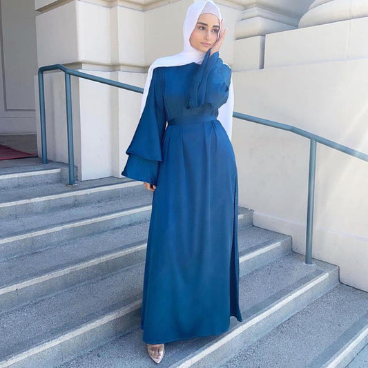 Solid Color Plus Size Double-layer Flared Sleeve Robe Dress