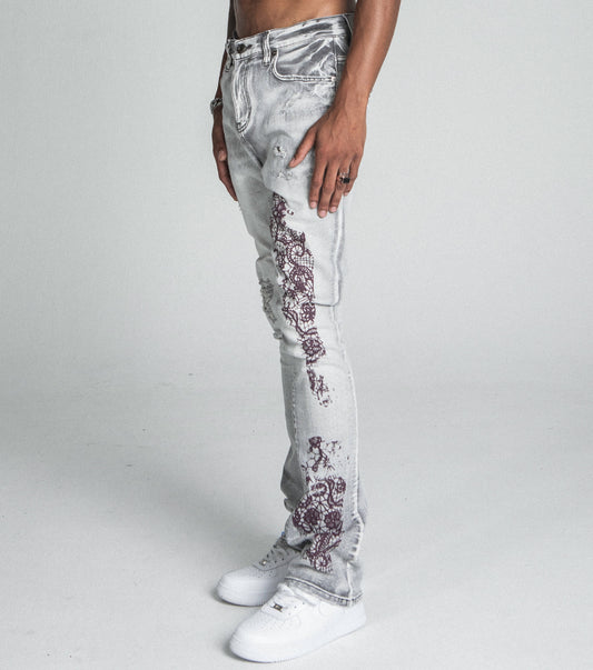 AJ33SK-2 BLACK LACE STACKED JEANS