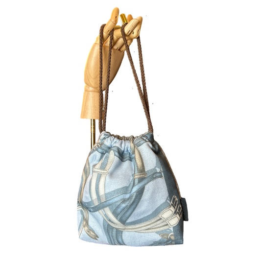 Equestrian Gray Vintage Scarf Drawstring Crossbody Bag
