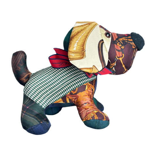 Equestrian Vintage Silk Scarf Patchwork Puppy