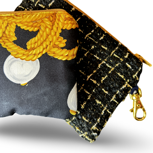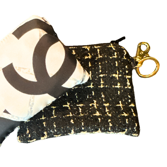 CC Logo Gold Coins Noir Vintage Silk Scarf Coffee Run Keychain Bag