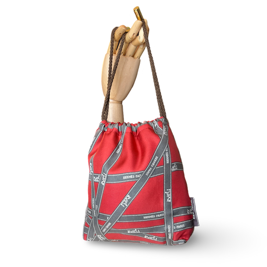 Bolduc Ribbon Bordeaux Vintage Silk Scarf Drawstring Crossbody Bag