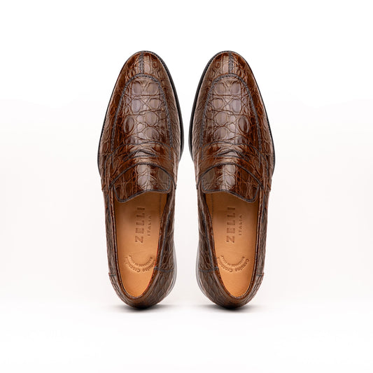11-201-CGM ROMA Crocodile Penny Loafer, Cognac