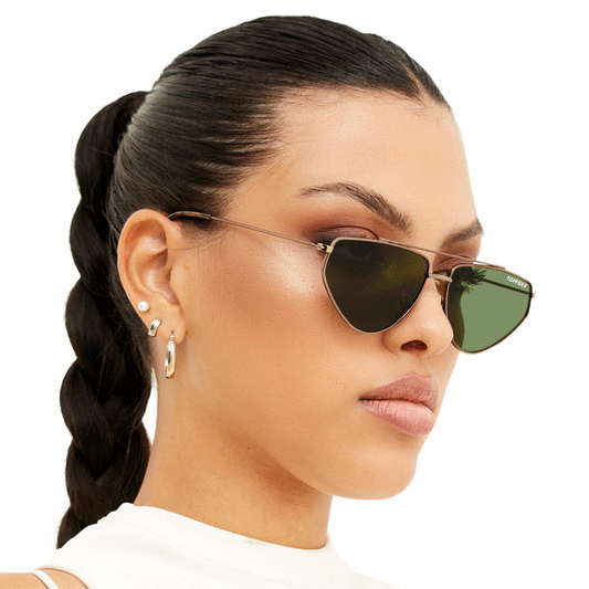 Smaller Megan 2 - Dark Green Metal Aviator Sunglasses