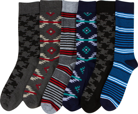 Sakkas Men's Crew High Patterned Colorful Design Dress Socks Asst Value 6-Pack