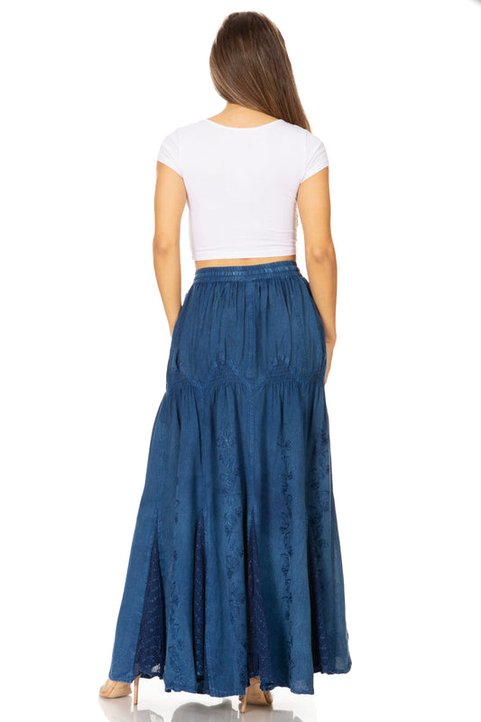 Sakkas Ahaana Women Renaissance Boho Rayon Maxi Embroidered Paneled Summer Skirt