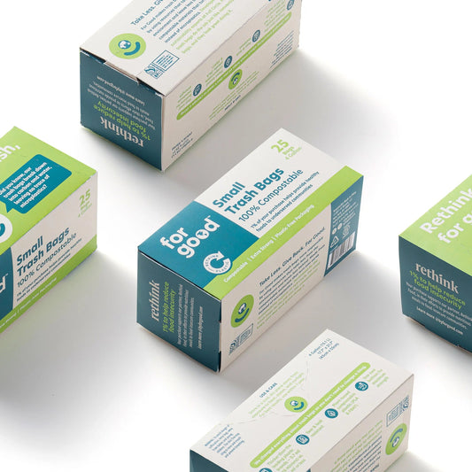 For Good™ Compostable Small Trash Bags – 4 Gallon, Plant-Based, Tear-Resistant – BPI Certified for Home & Office Use (White with Green Text, 25 Count)