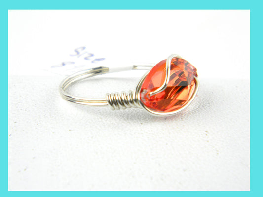 Sterling Silver Hyacinth Crystal Navette Wire Wrapped Ring