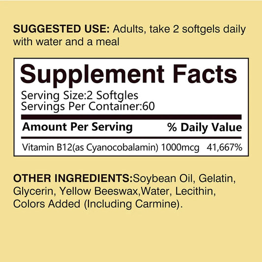 Vitamin B12 - Supports Energy, Metabolism, Relieve Fatigue, Heart Health, Improve Sleep Health