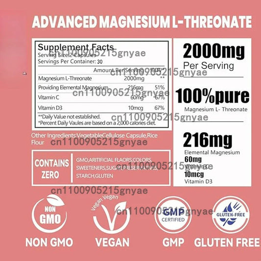 L-Threonate Magnesium Supplemental Capsules 60 Capsules with 3000mg High Absorption Liposomes for Brain, Sleep Support, Energy