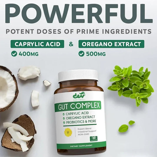 Octanoic acid, avocado oil, and probiotics help maintain normal levels of yeast and Candida - vegetarian, intestinal cleansing
