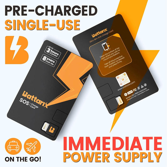 BATTARIX SOS Charge Card - Ultra-Thin Credit Card Sized Portable Charger & Battery Bank - External Battery Lightning Phone Charger for Android and iPhone Models (Single Use, Pre Charged)