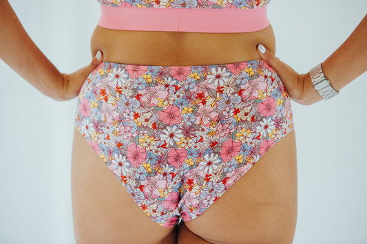 Pink Floral Embroidery Pearl Chain Lingerie Set