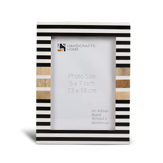 Wood & Resin Inlay Striped Picture Frame, Black & White