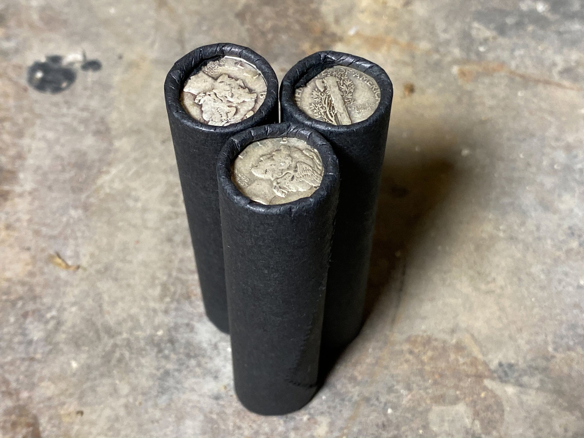 Each 'Buy it Now' is for ONE wheat penny roll with a silver mercury dime showing on one end.