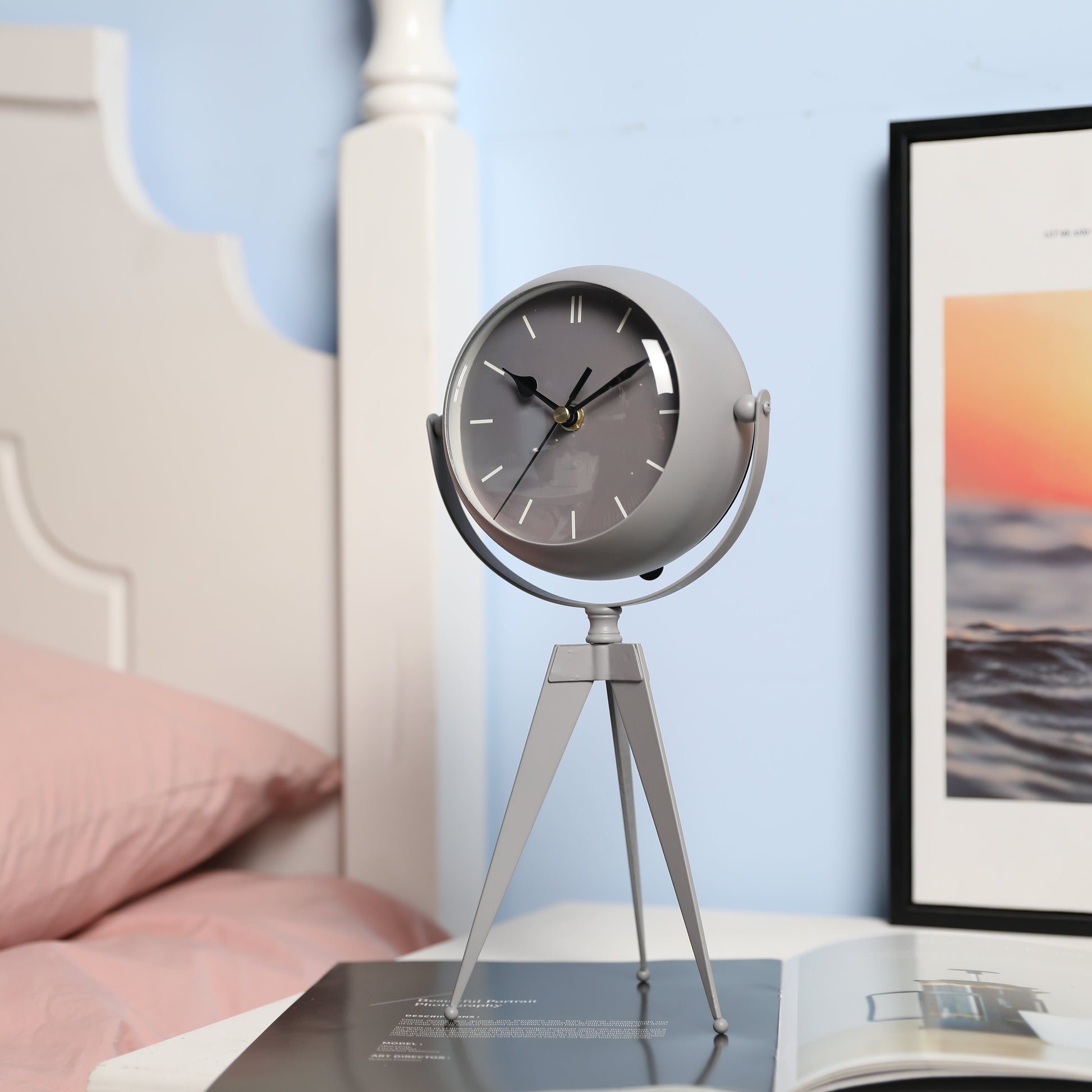 12.5"H Wrought Iron Glass Standing Clock (Elegant Grey)