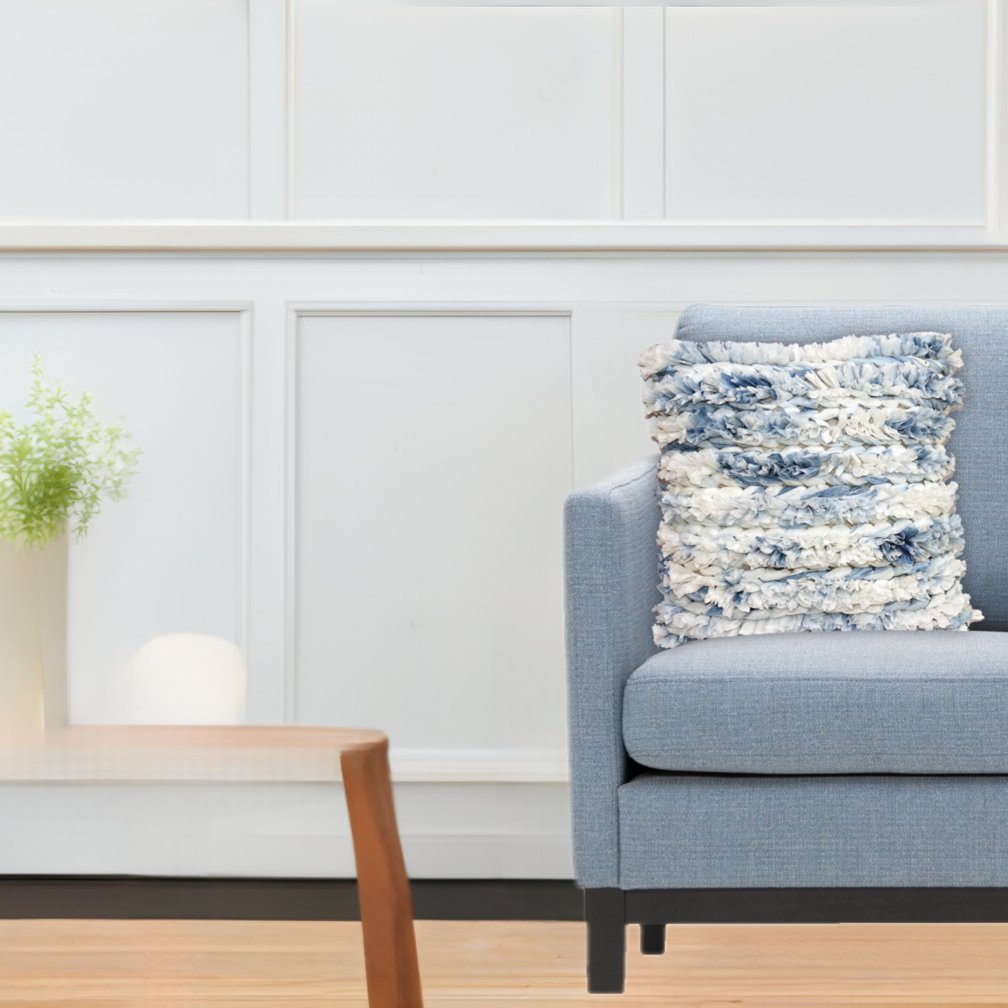 22 X 22 Inches Throw Pillow Cover Blue & White Furry Stripes