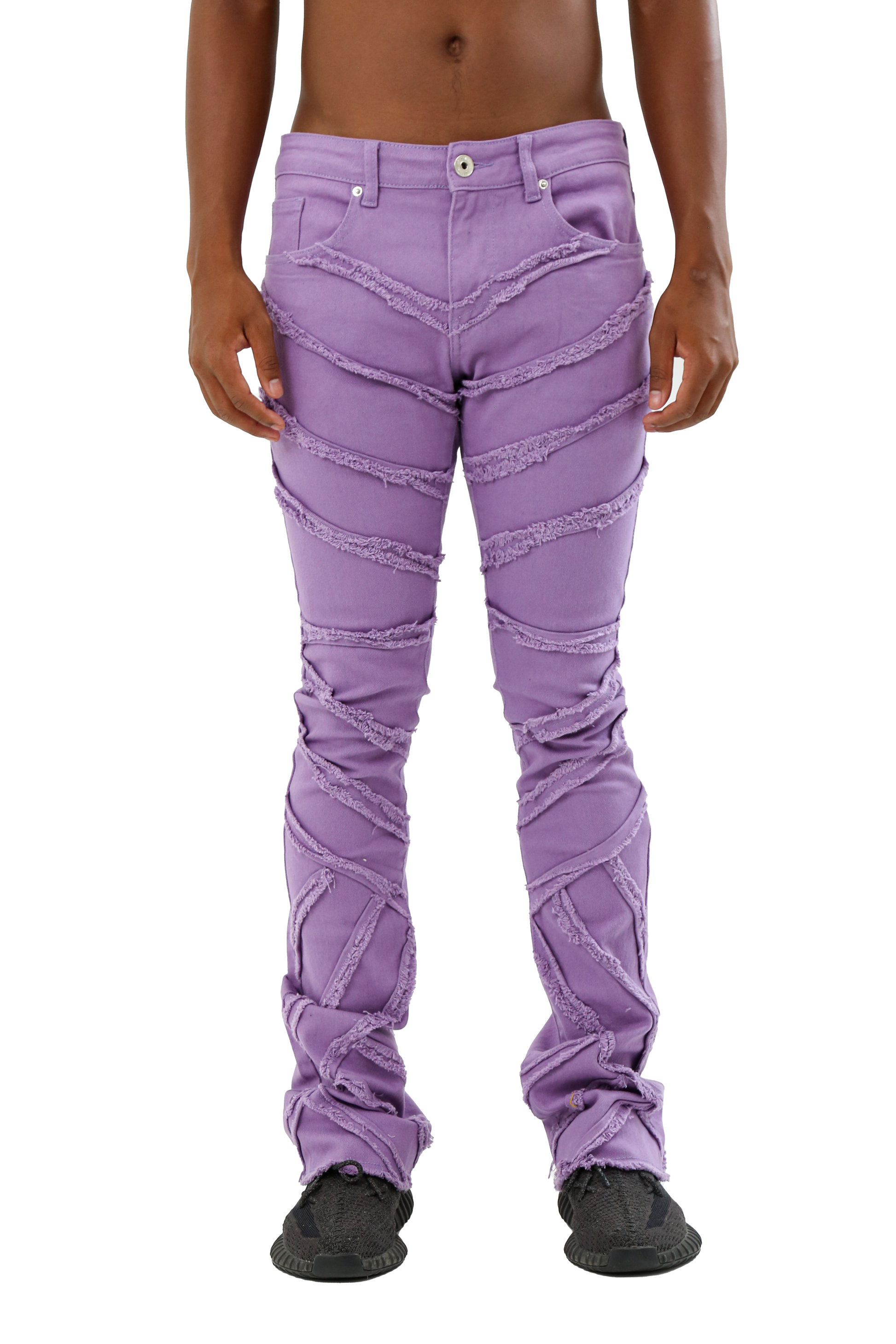 Shredded stacked leg jeans with a five-pocket design, belt loops, and a zipper fly and top button fastening. Made from cotton.