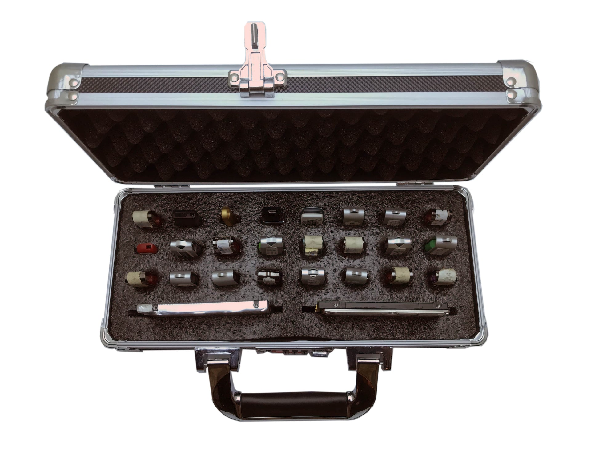 - Aluminum organizer case with 24 foam-lined USB slots + 2 accessory bays.