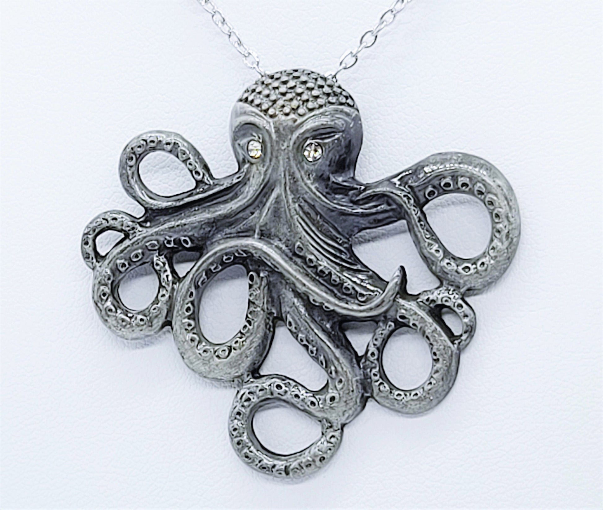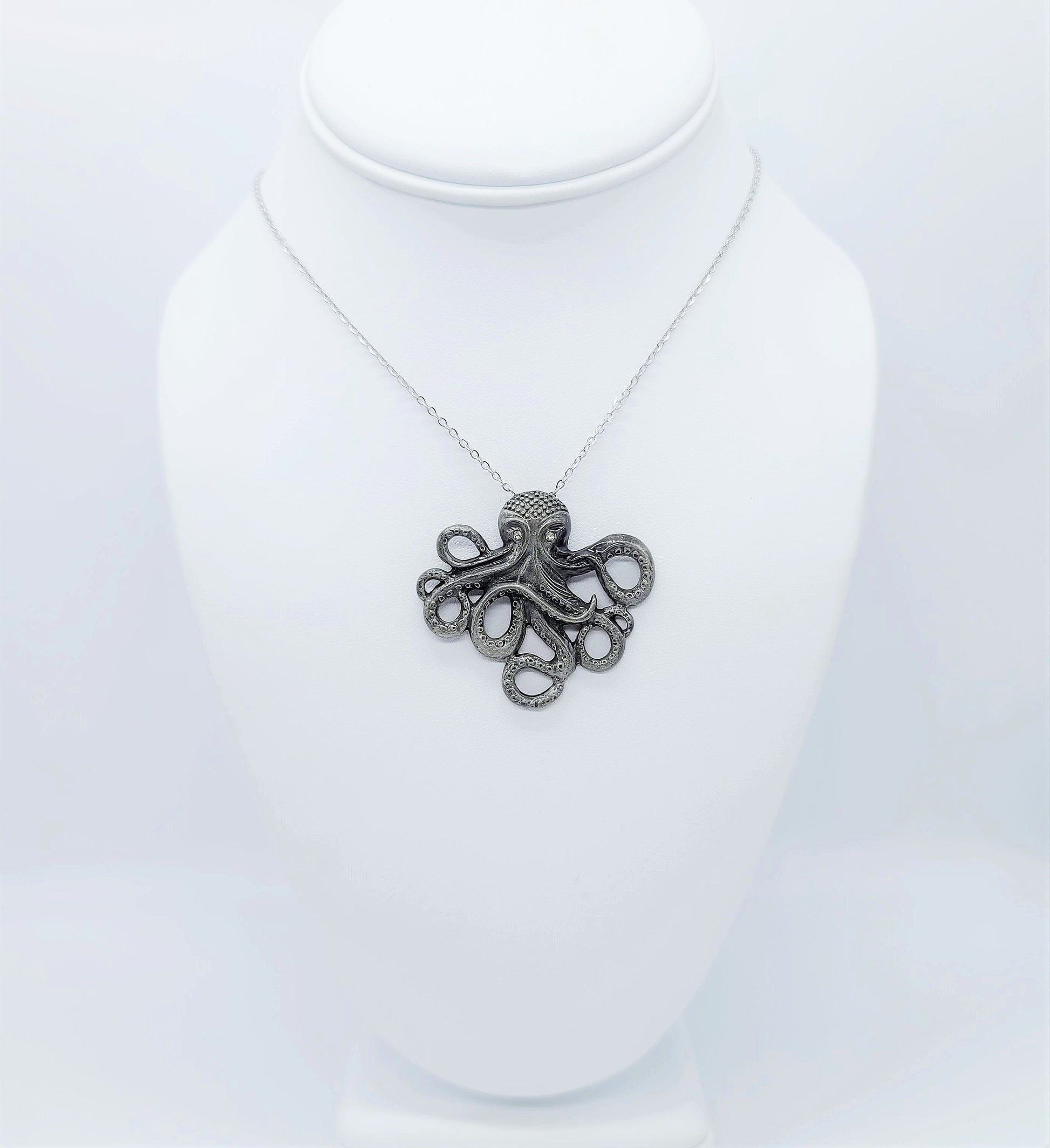 Antique Silver Metal Octopus Pendant Necklace - 18" Stainless Steel Silver Hypoallergenic Chain - Lobster Claw Closure - Alloy Pendant.