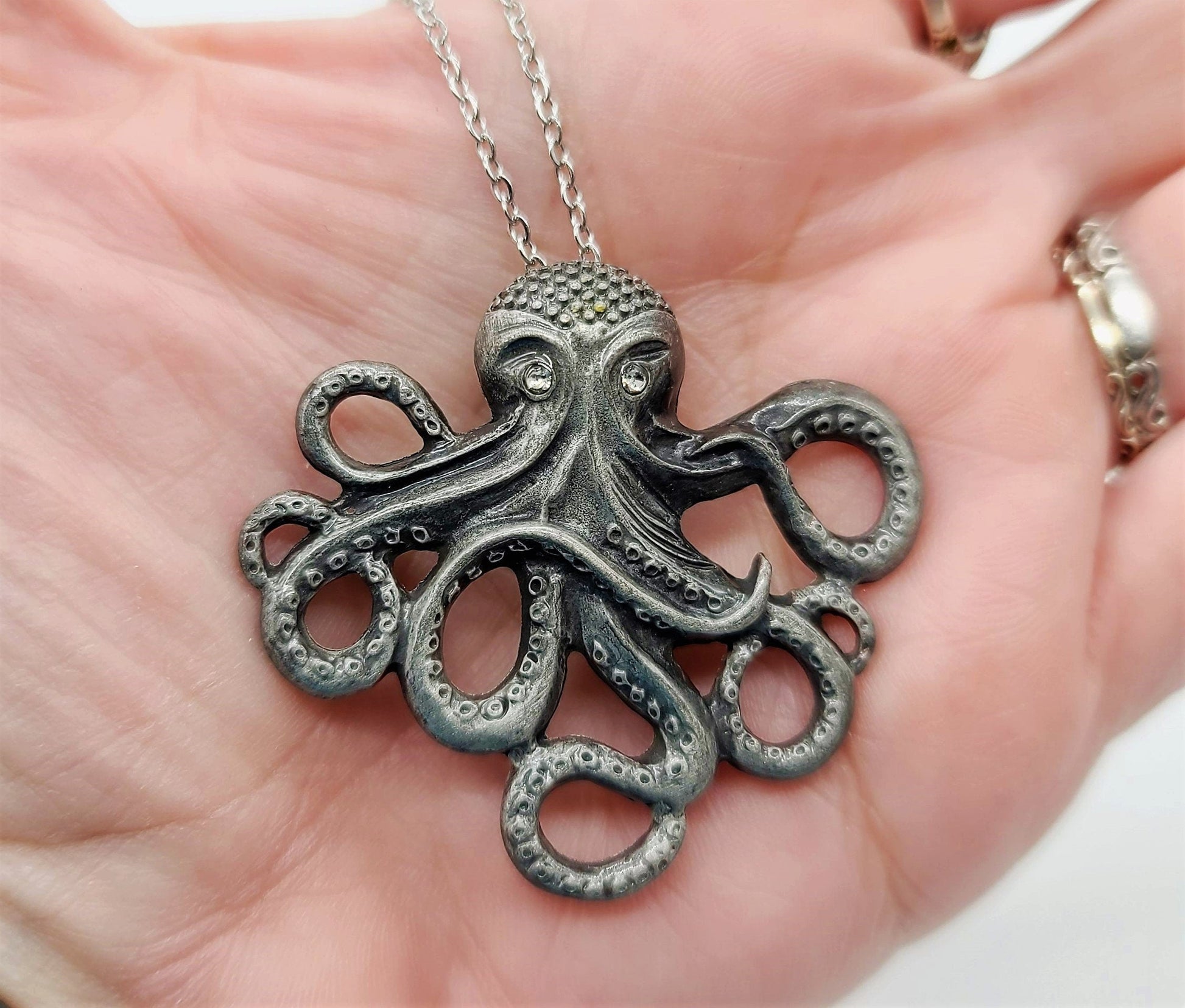 Antique Silver Metal Octopus Necklace