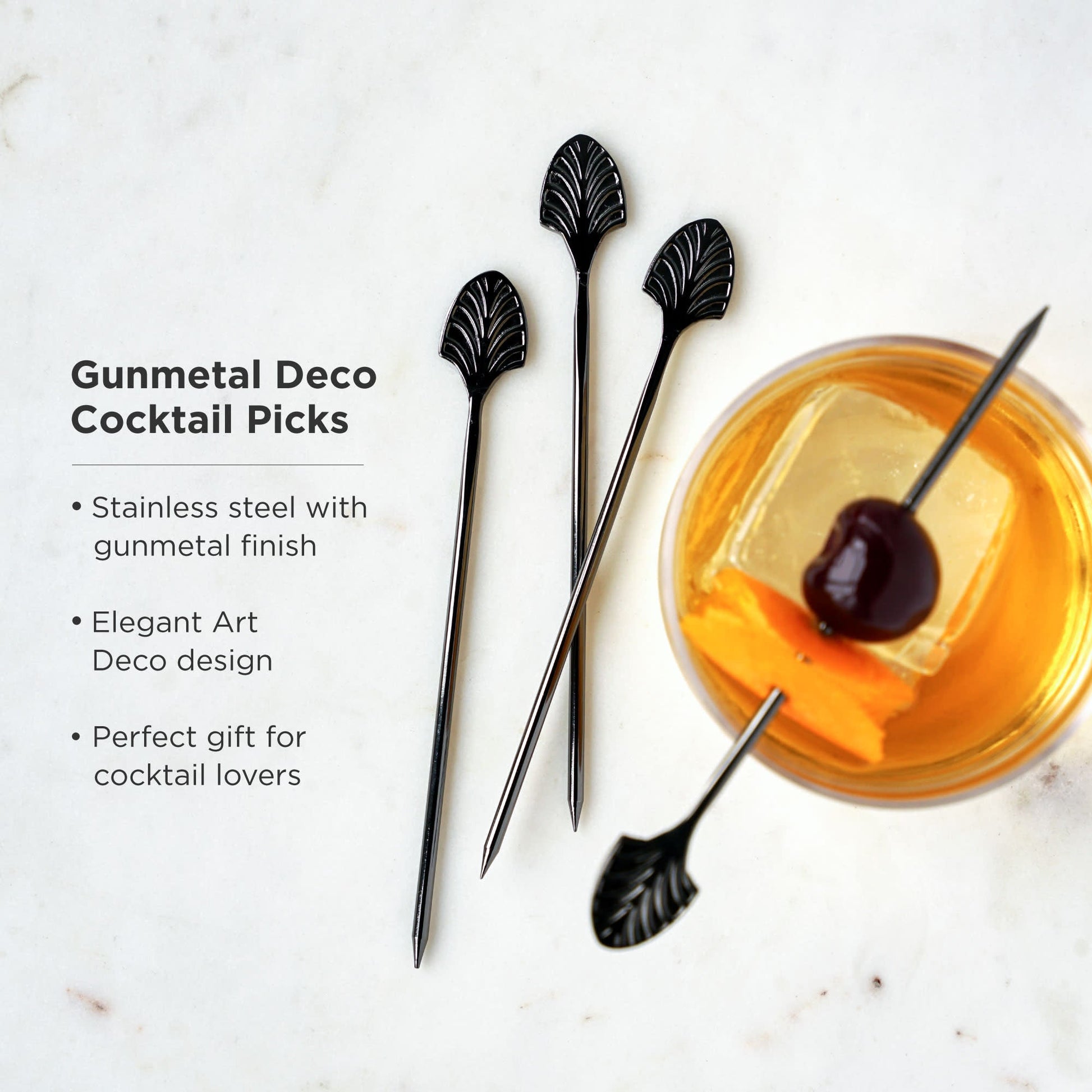Art Deco Cocktail Picks in Gunmetal Set of 4