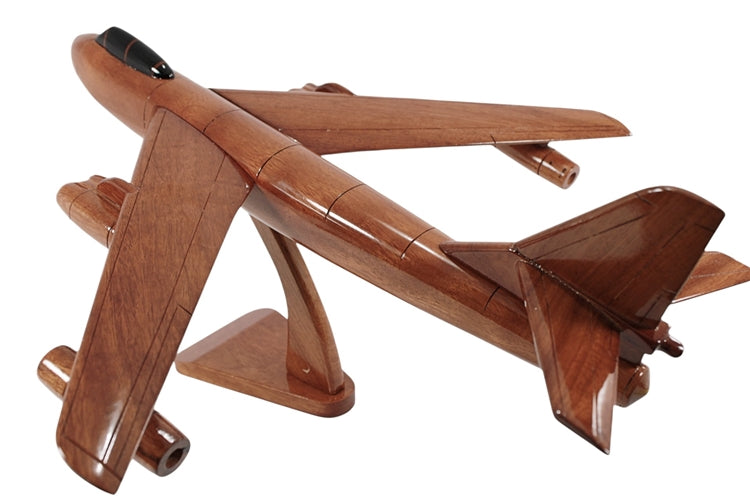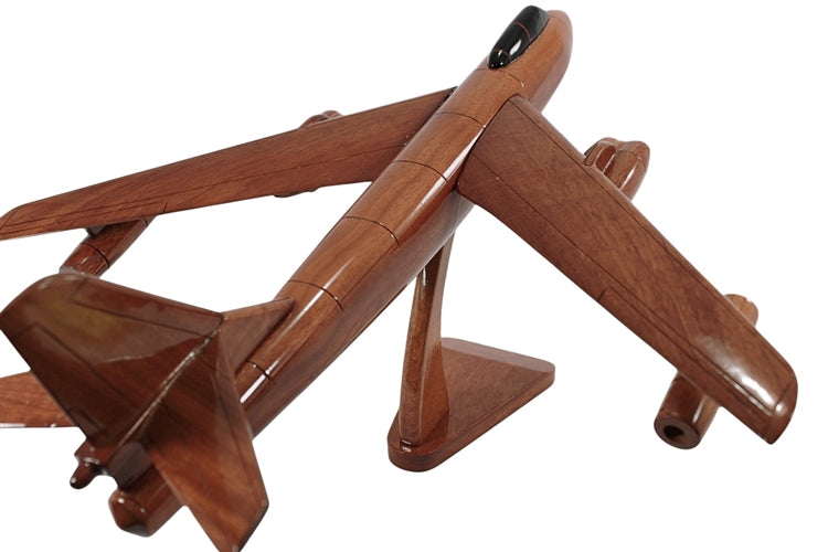 This scale model of the B-47 has been beautifully recreated by craftsmen skilled in mahogany woodwork. Careful detailing and a high gloss finish reveal the deep wood grain. Stand included. 17” Long x17” Wide x 9” High