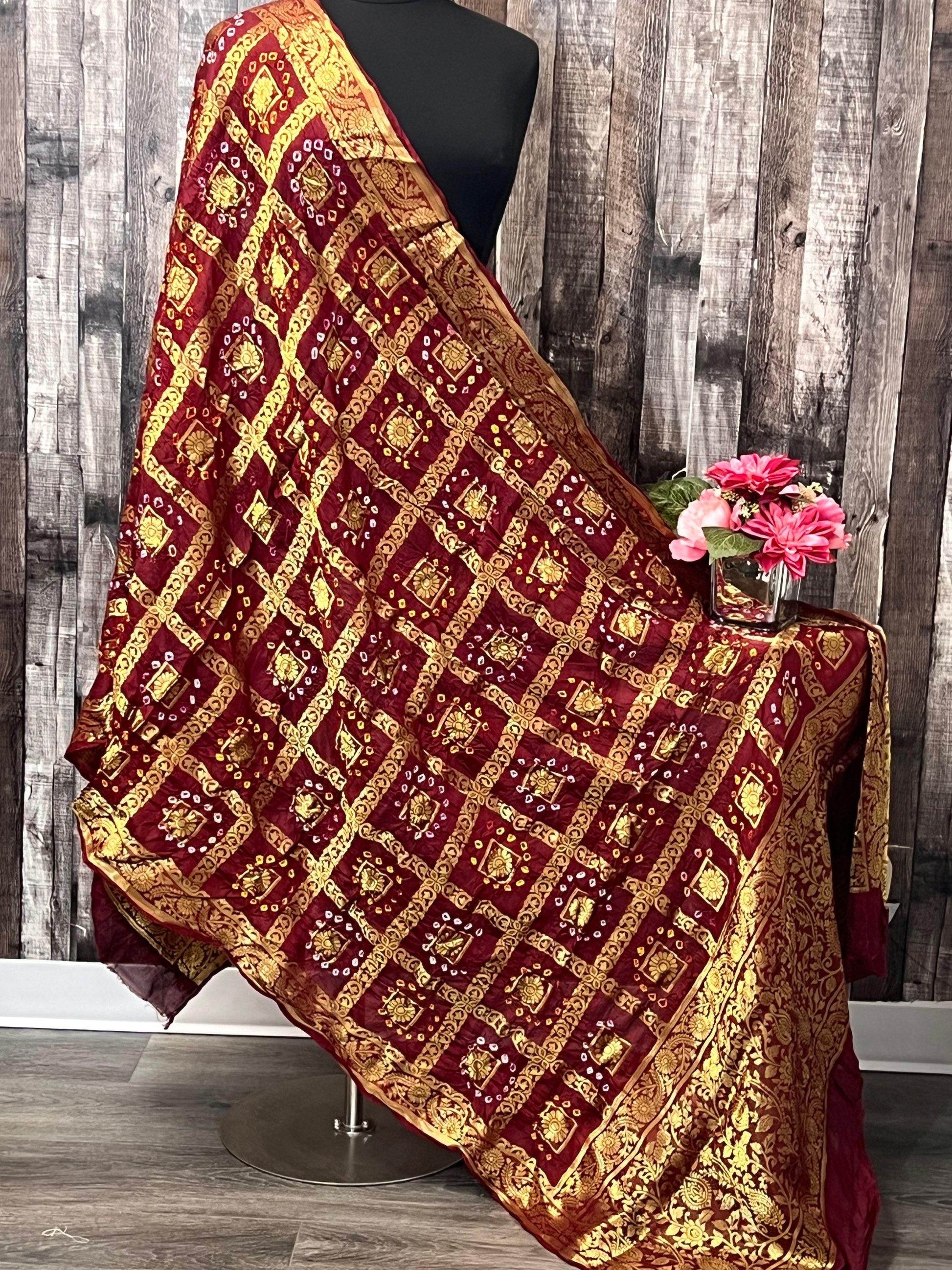 Bandhani silk dupatta ,bandhej dupatta , traditional Indian dupatta