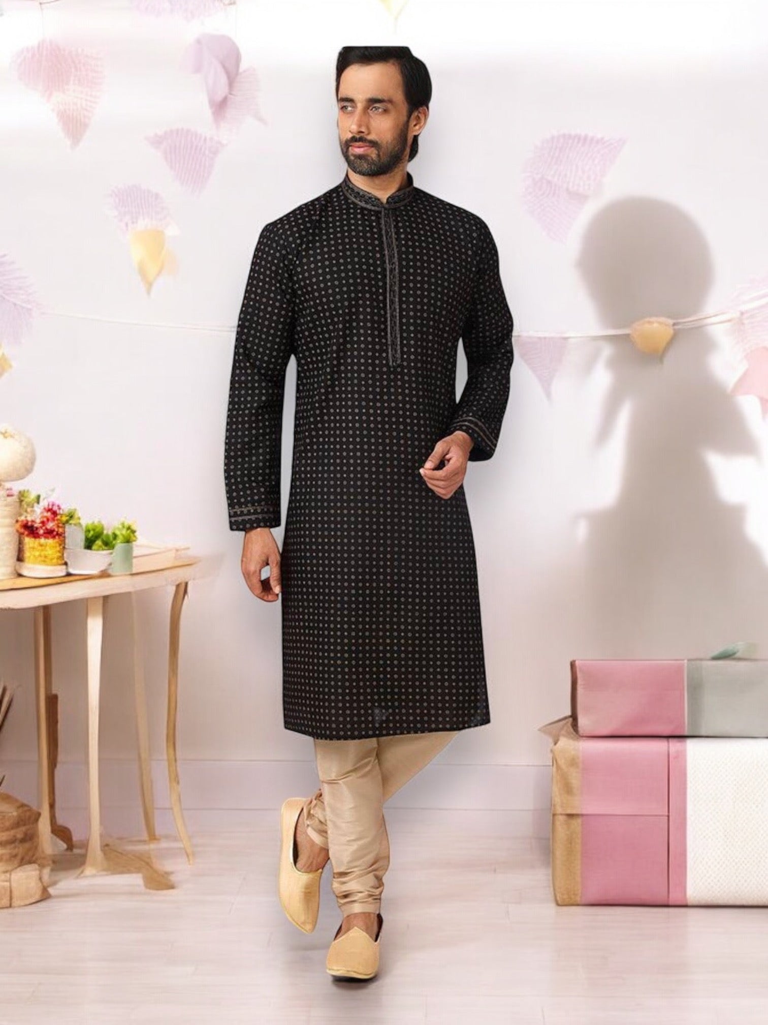 Black - Cotton Kurta with Pajama Set– Ethnic Wear for Men