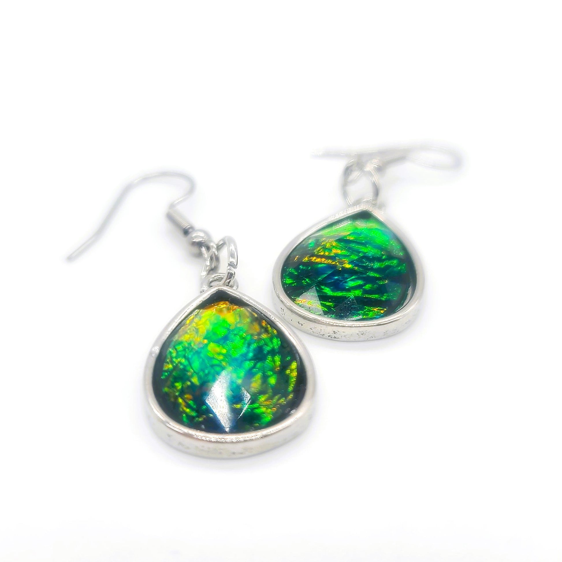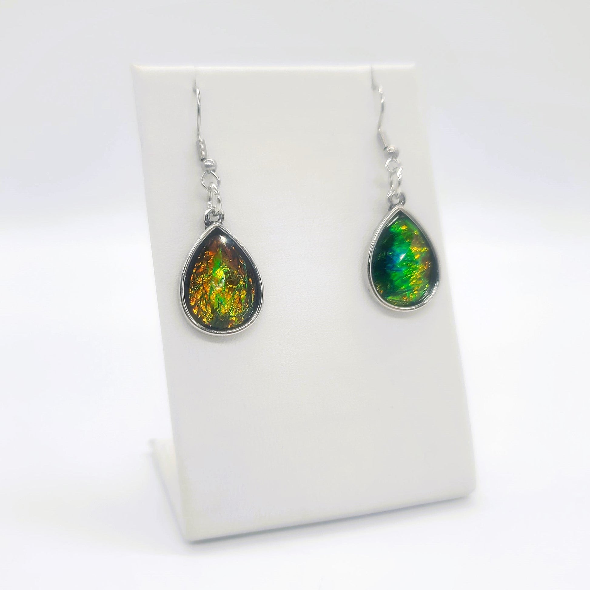 Black Opal (like) Sparkle Teardrop Pendant Earrings / Hypoallergenic Stainless Steel Ear Wire Hooks.