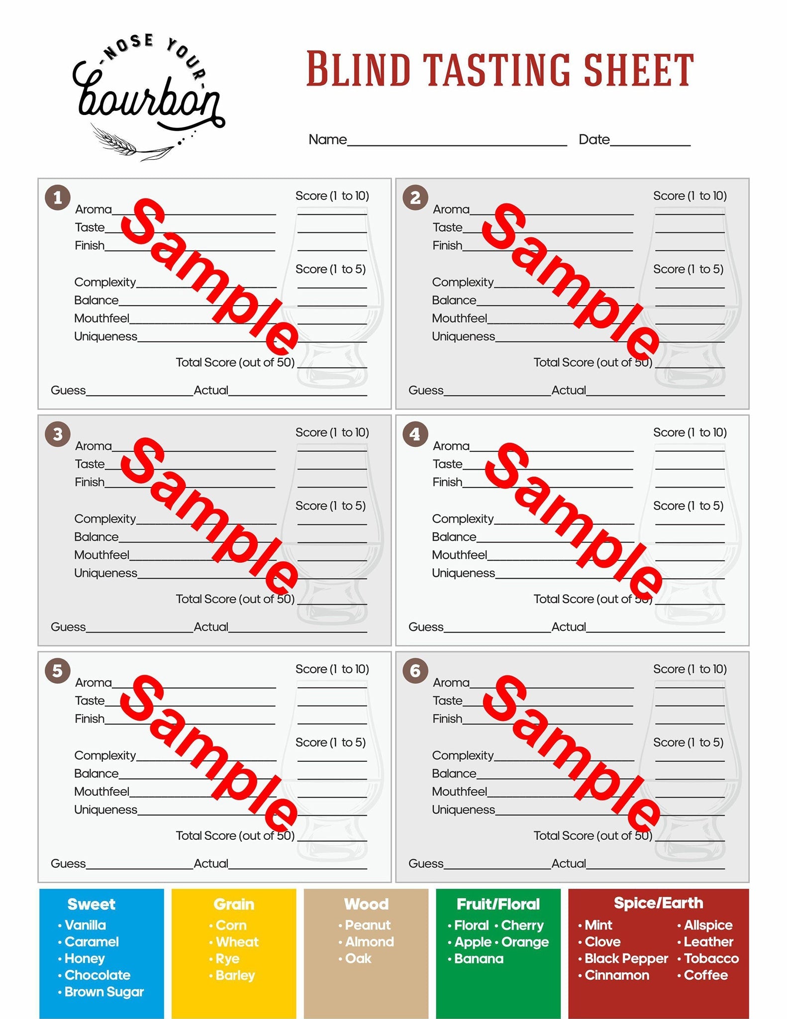 This Blind Tasting Sheet is ideal for anyone ready to dive deeper into bourbon appreciation and hone their palate with a structured, objective approach. Use it to train your nose and palate, identify subtle flavor notes, and confidently choose your next favorite bourbon—blindfold optional.